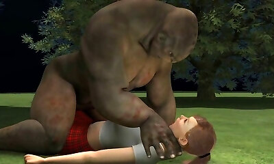 Man Sausage goblin pokes hard fitness girl in the forest at night