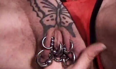 piercings, ringe in clit und cuntlips und rosa zigarre