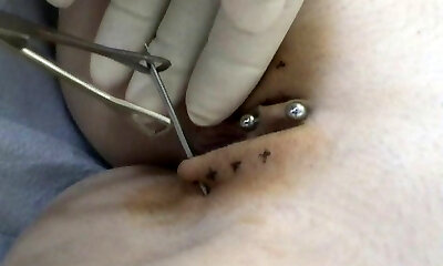 Real Clitoris piercing and through with a syringe