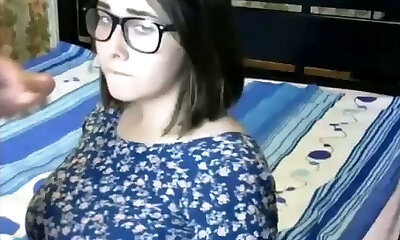 monster boobs super-fucking-hot nerd facial on webcam glasses teen