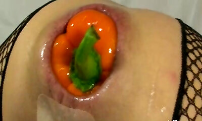 Gigantic ass-fuck vegetable insertions