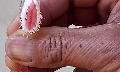 Fucking a toilet brush till she squirts in orgasm